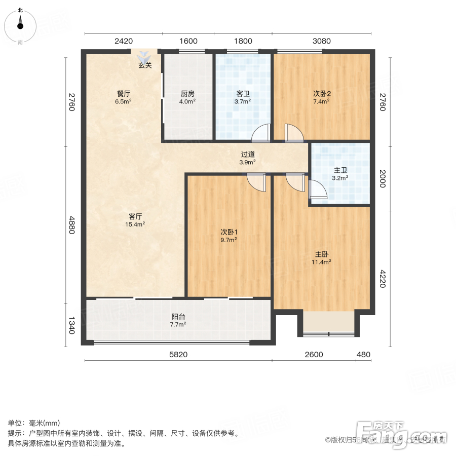 户型齐全,主打南北通透,客厅朝南三居