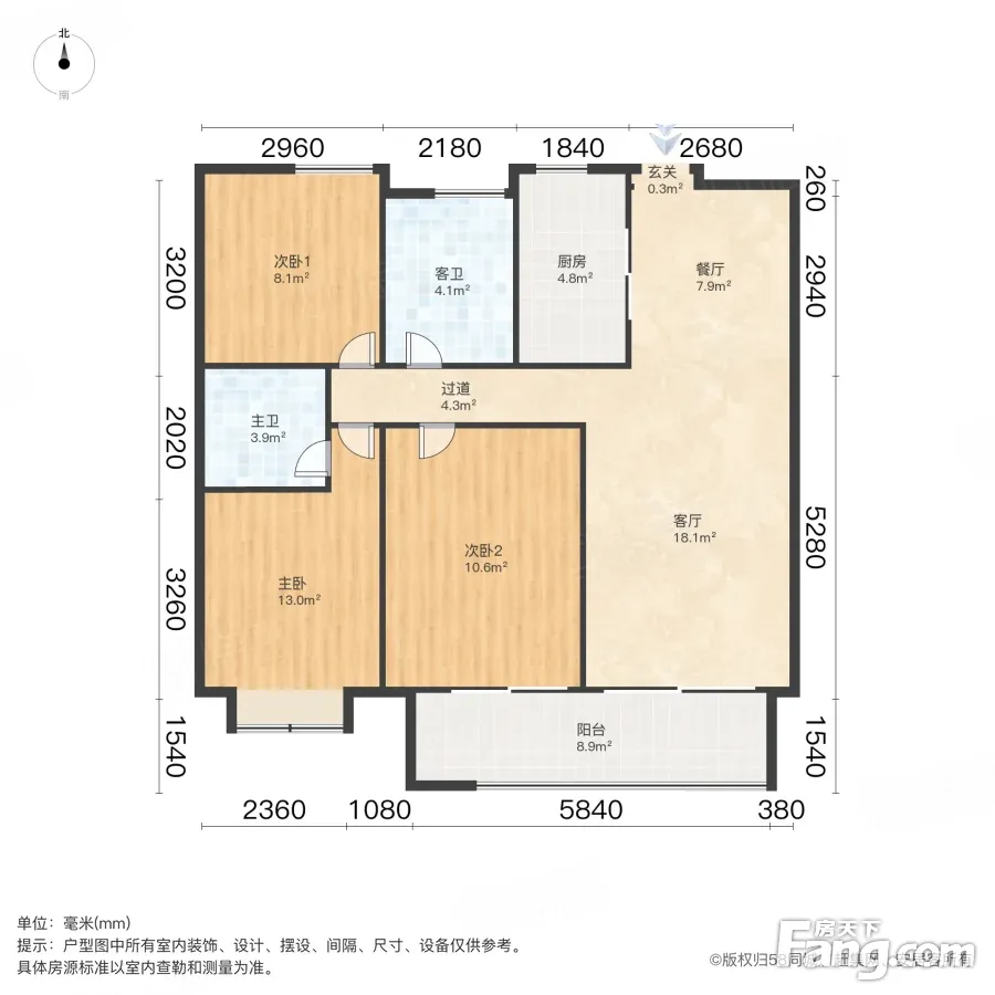 户型齐全,主打南北通透,客厅朝南三居