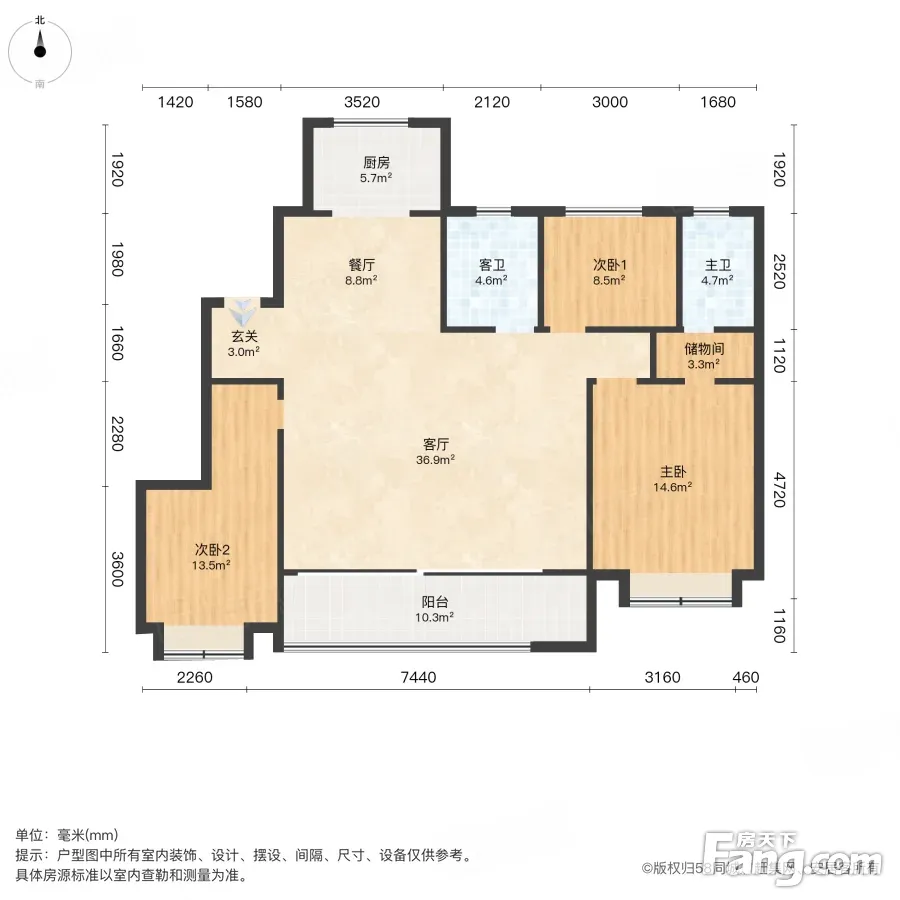 户型齐全,主打南北通透,客厅朝南三居