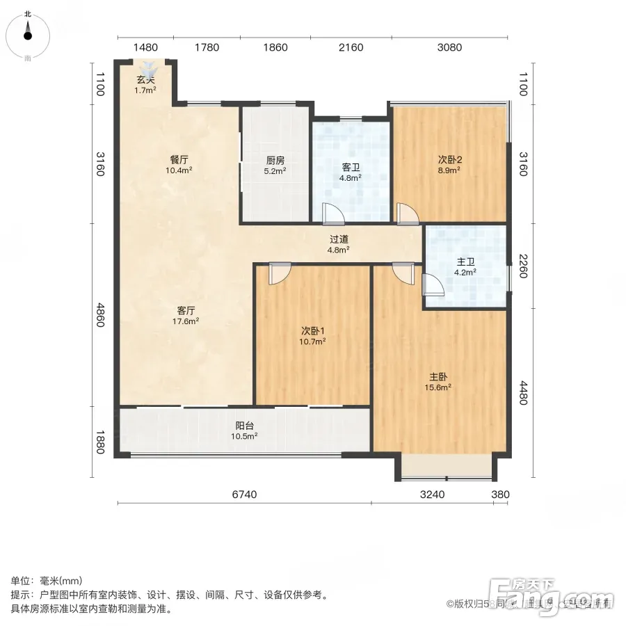 户型齐全,主打南北通透,客厅朝南三居