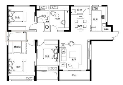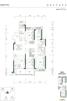 户型齐全,主打户型方正,双阳台三居