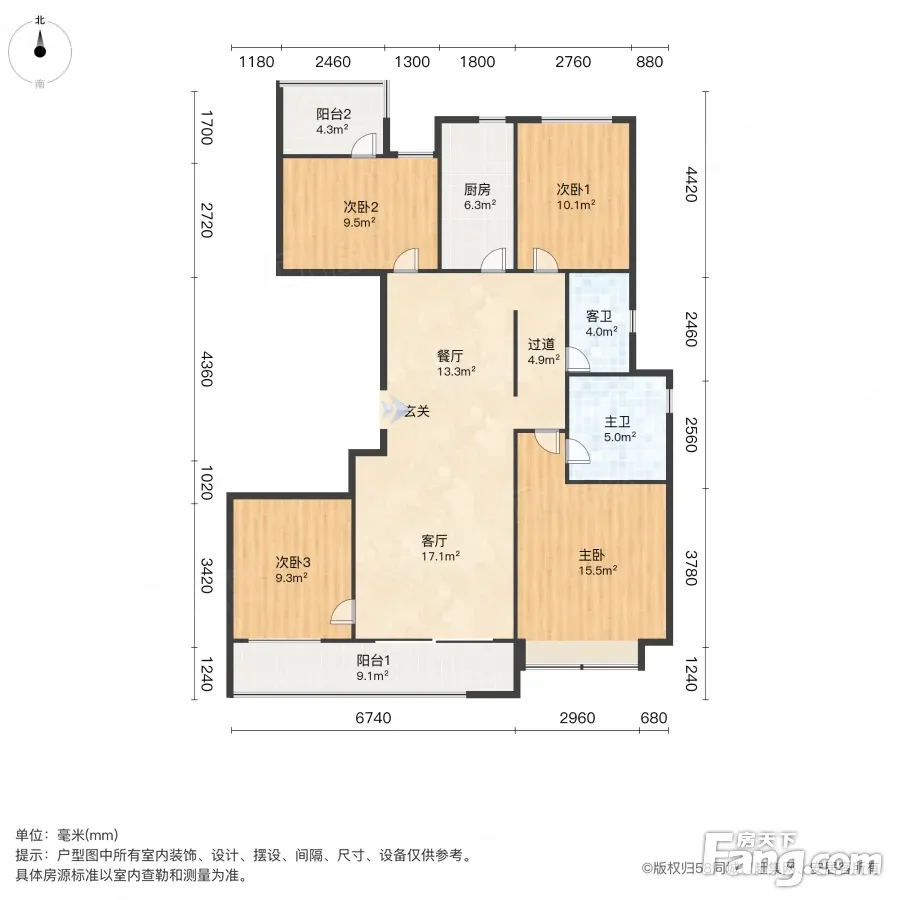 户型齐全,主打南北通透,户型方正,客厅朝南,主卧带卫,L型厨房,大面宽阳台四居