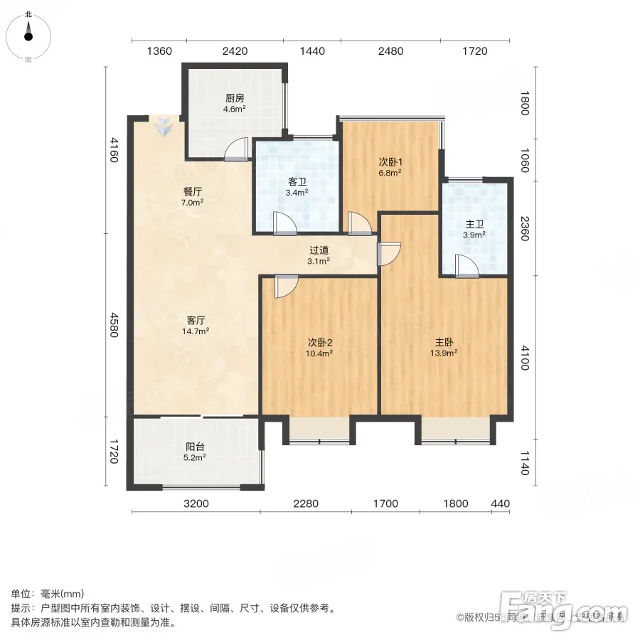 户型齐全,主打南北通透,客厅朝南三居