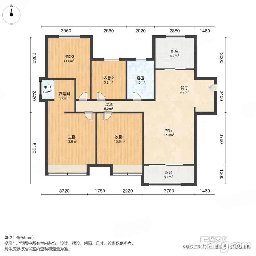 信达天御枫丹阁 精装修四房 南北通透 位置安静 户型方正