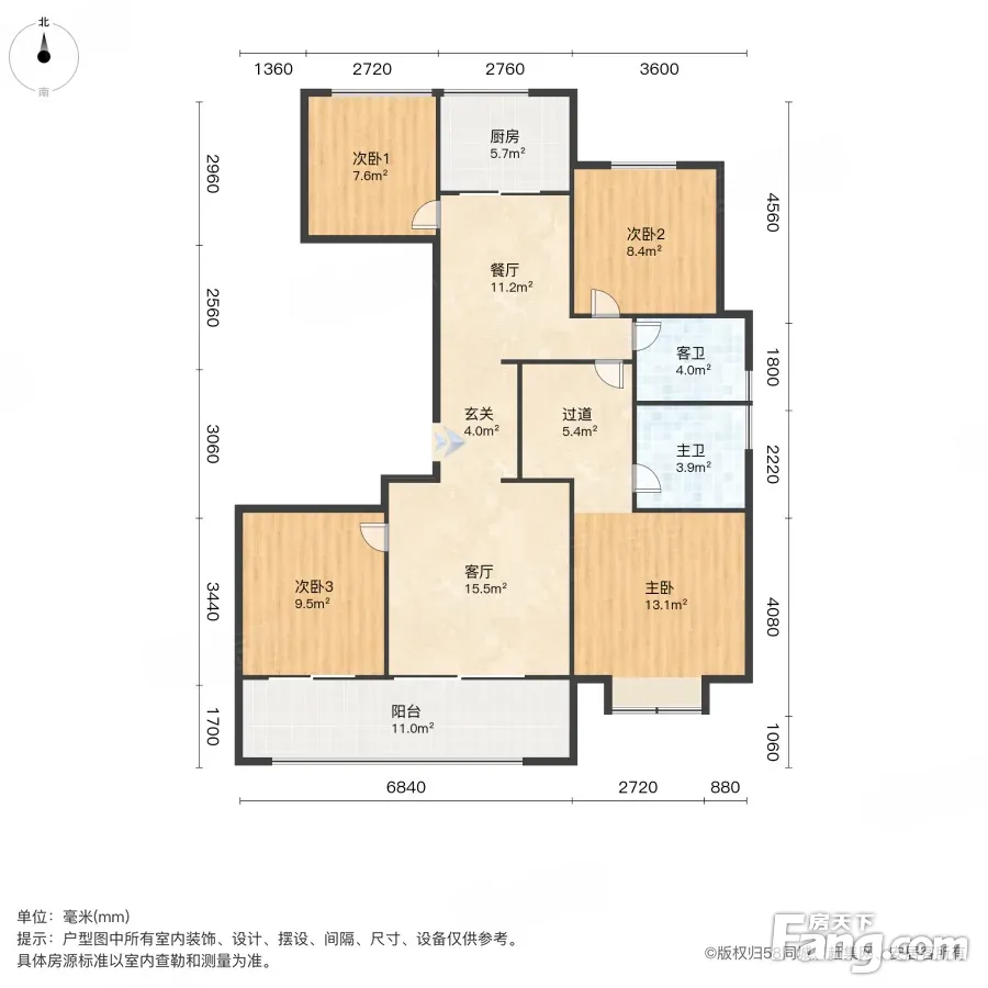 户型齐全,主打南北通透,卧室朝南四居