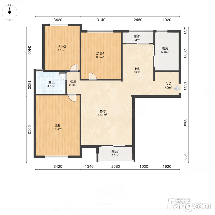 户型齐全,主打户型方正,明卫,明厨,客厅朝南三居