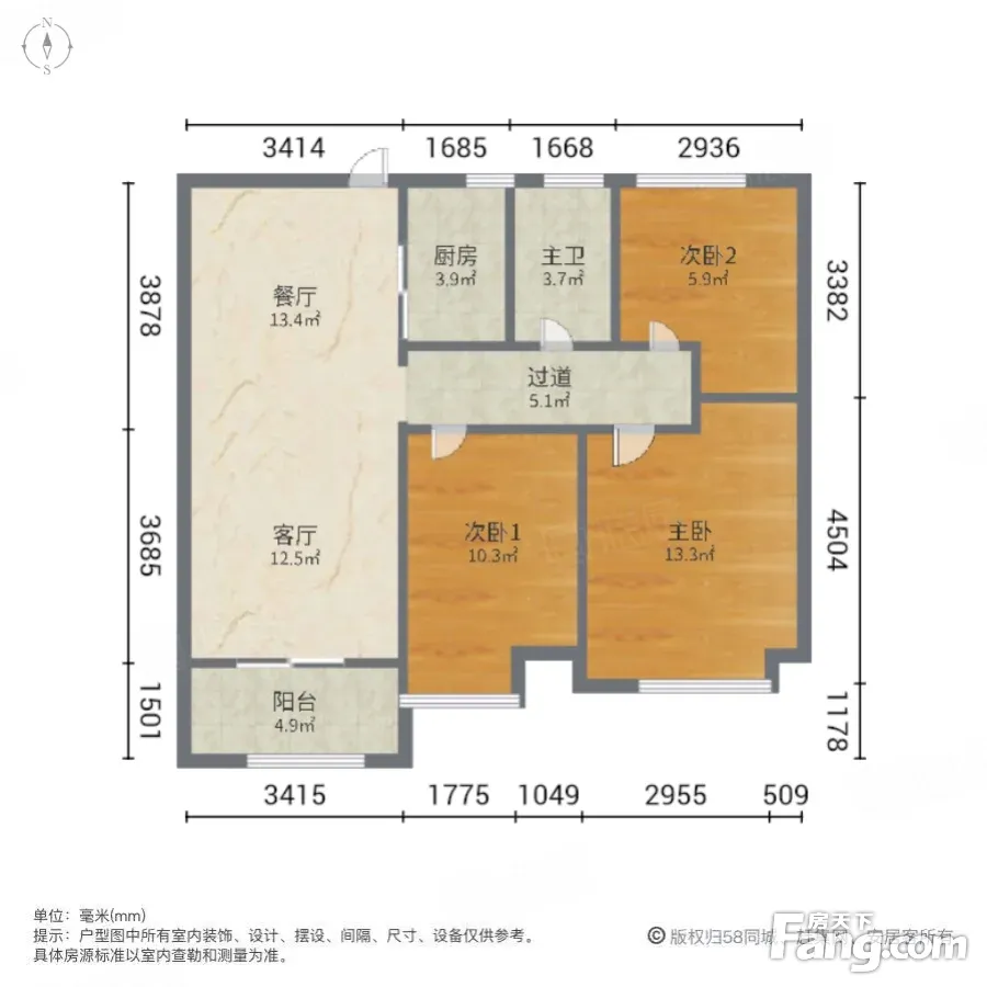 南北通透海亮九玺3室1厅