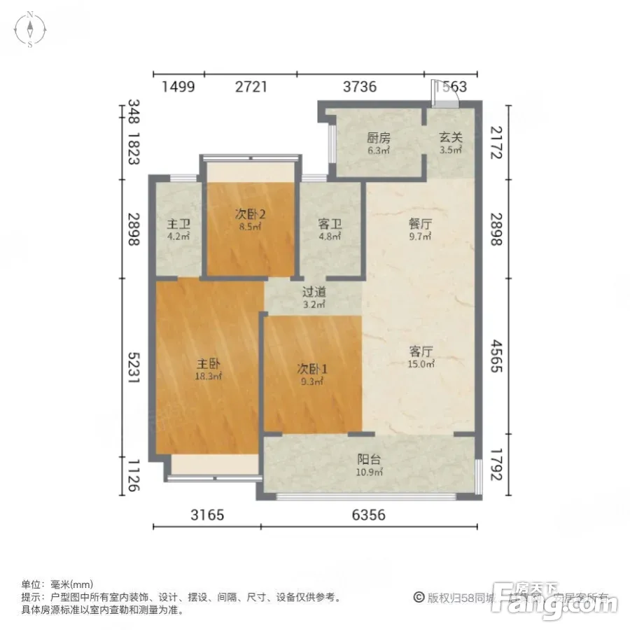 户型齐全,主打南北通透,客厅朝南三居