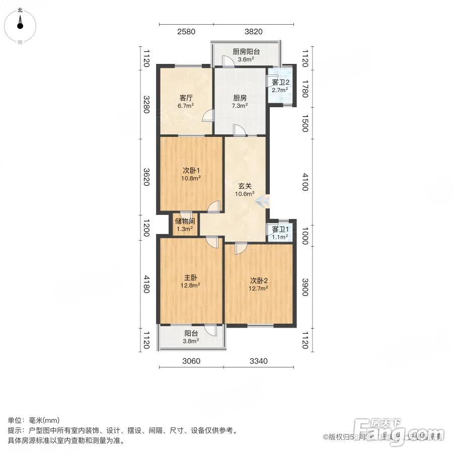 户型齐全,主打明厨,双卧朝南,主卧朝南二居