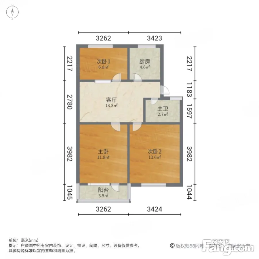 户型齐全,主打户型方正,明厨,主卧朝南二居