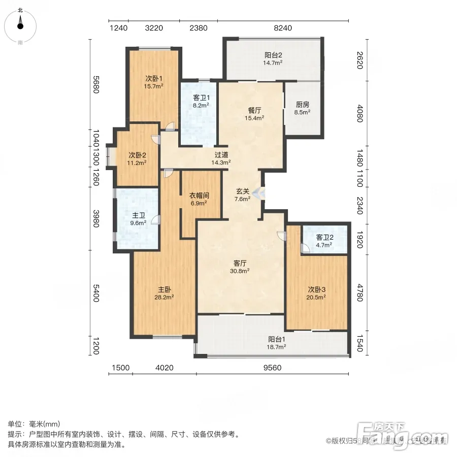 户型齐全,主打户型方正,独立衣帽间,明卫,双阳台,主卧朝南三居