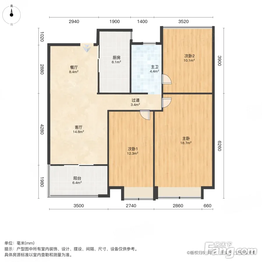 户型齐全,主打户型方正,明卫,明厨,主卧朝南三居