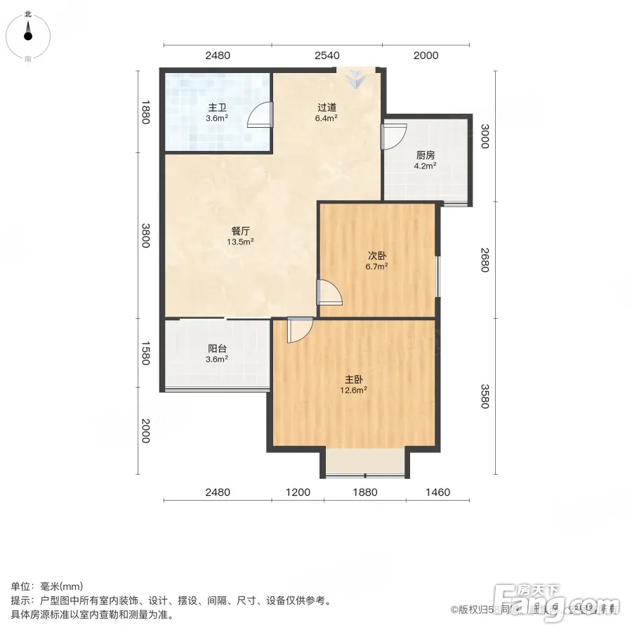 户型齐全,主打户型方正,明厨,主卧朝南二居