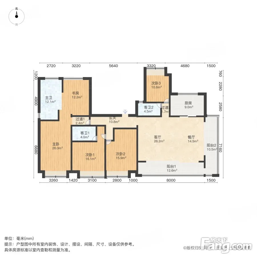 户型齐全,主打南北通透,客厅朝南四居