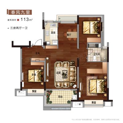 户型齐全,主打户型方正,高附赠空间,采光充足三居