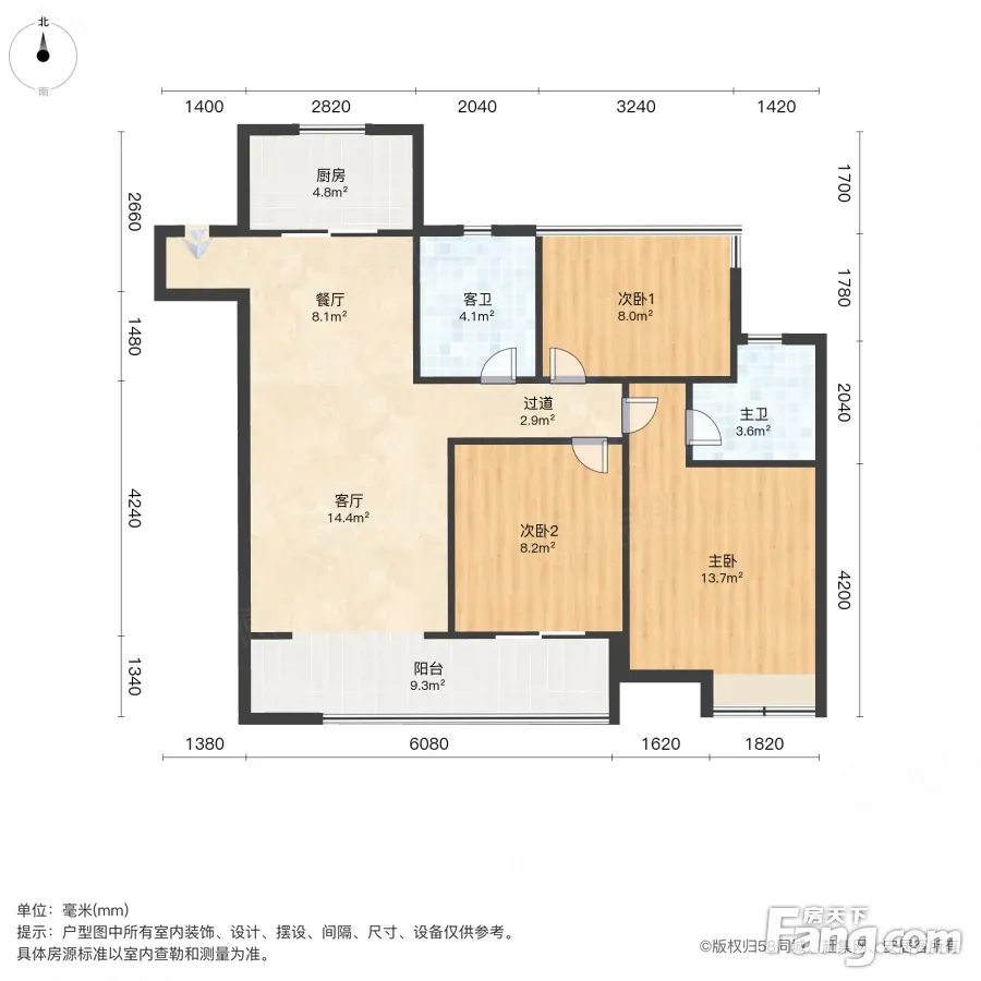 户型齐全,主打南北通透,客厅朝南三居