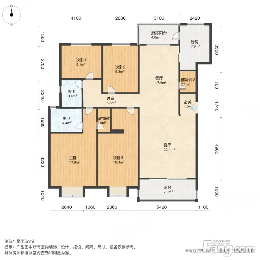 户型齐全,主打户型方正,明厨,明卫,双阳台,双卧朝南,主卧朝南三居
