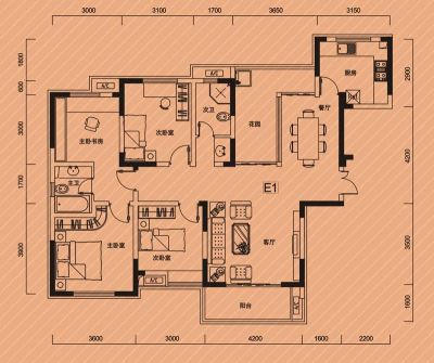 户型齐全,主打户型方正,明卫,主卧朝南三居