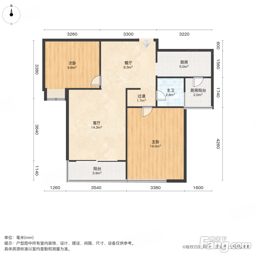 户型齐全,主打户型方正,明厨,明卫,主卧朝南二居