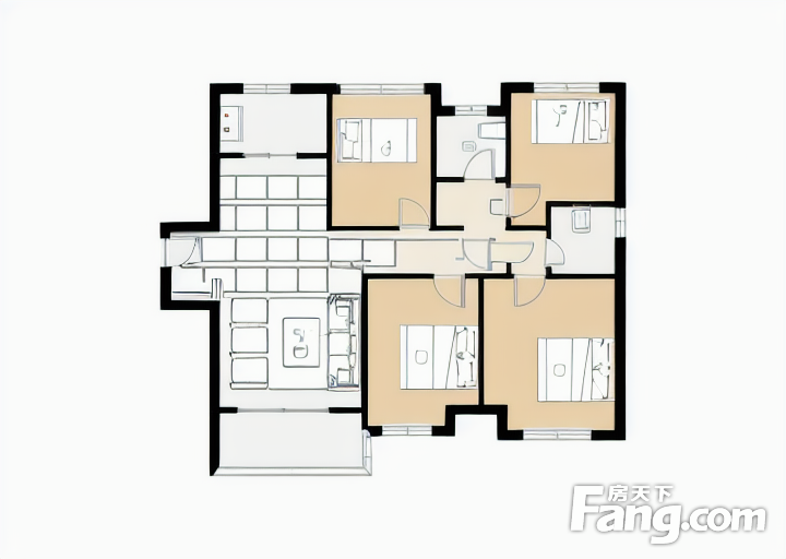 户型齐全,主打南北通透,户型方正,客厅朝南,主卧朝南三居
