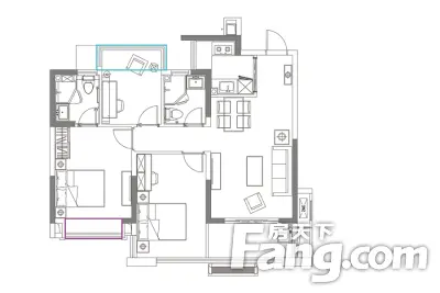 户型齐全,主打全明格局,采光充足三居