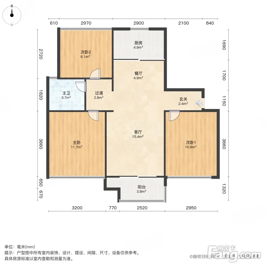 户型齐全,主打南北通透,客厅朝南三居