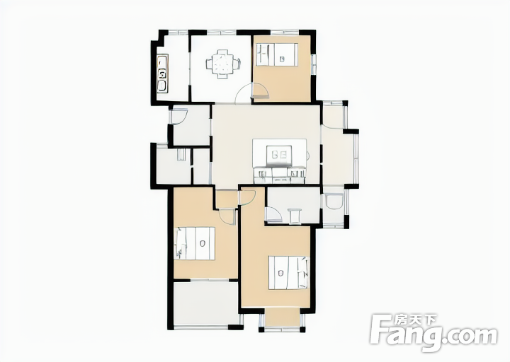 户型齐全,主打户型方正,双卧朝南,主卧朝南三居