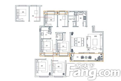 户型齐全,主打户型方正,采光充足四居