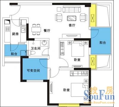 户型齐全,主打户型方正,明卫,明厨,主卧朝南三居