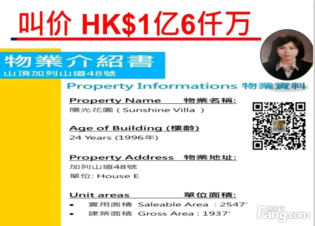 加列山道48號, 陽光花園 House E 實用面積: 2547平方呎 花園面積: 1937平方呎 靚裝修, 山頂唔使2億別墅,選擇很少,叫價 2億, 底價1.6億 (可以買賣公司)