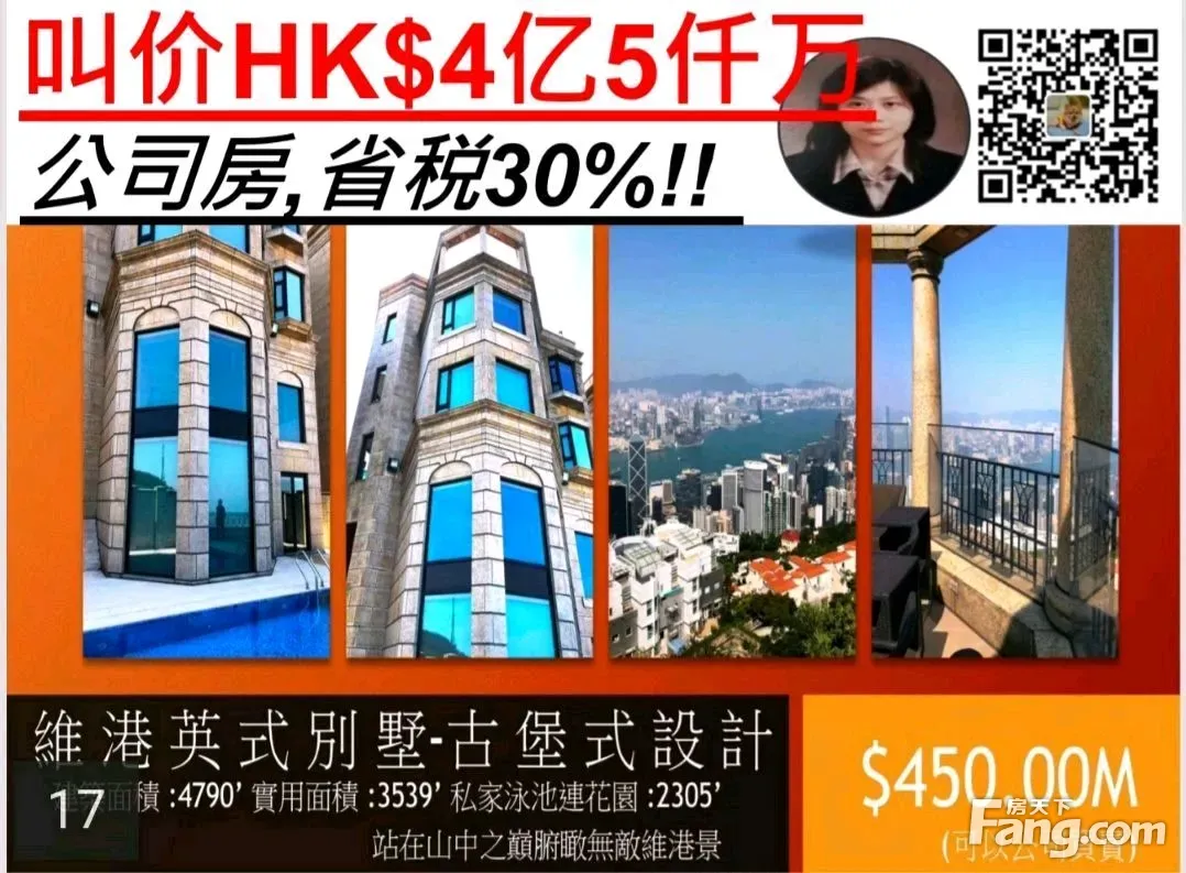山頂 南区豪宅 君临气势 公司房税0.2% !低税购香港房