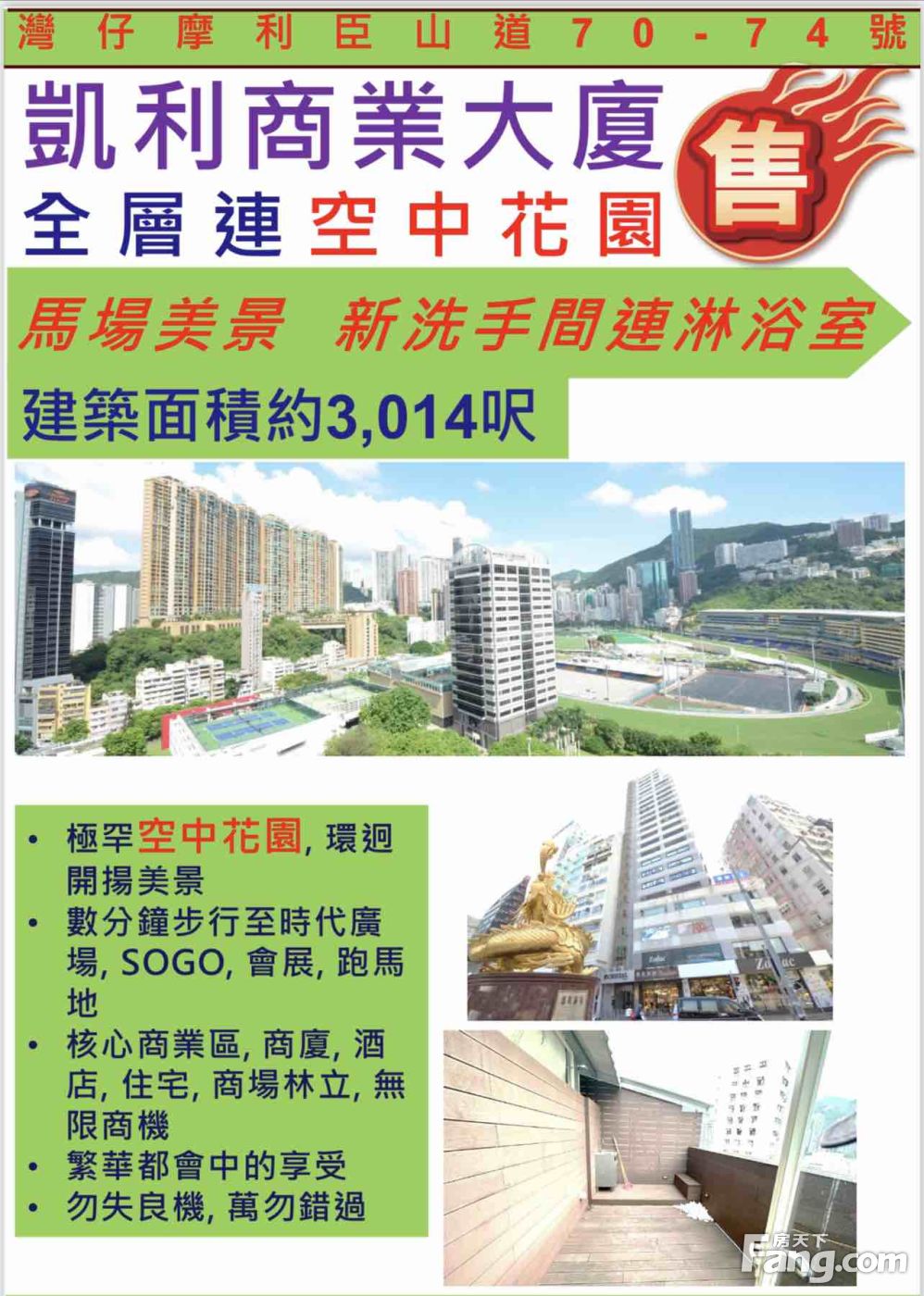 【凯利商业大厦】【全层连空中花园】【3014呎】
