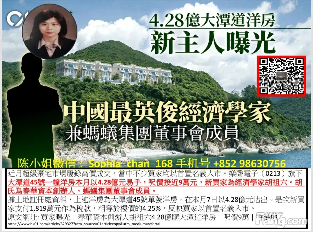 本人和 我专业 、靠普团队 为您置业 安家保驾护航 进入我店铺查看全香港房源推介 陈小姐: +852 9863 0756 VX号: Sophia_Chan_168