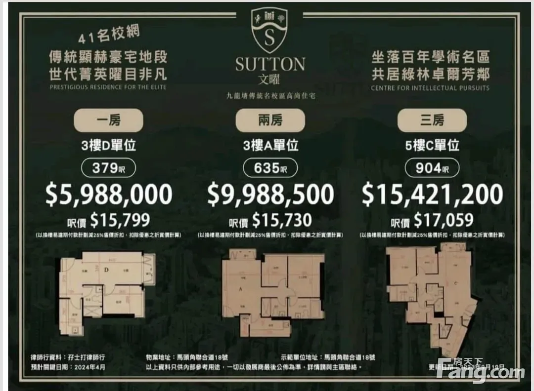 項目位處九龍城鬧區,望九龍塘一帶樓景,朝向大都会城市景為主。1小時生活圈衣食住行配套齐全,41区尖子小學区。 项目名称:文曜 (SUTTON) 发展商 :建灏地产 地 址 :九龙马头角联合道18号 单位总数:92伙 单位间格:1及4房 单位面积:379至2,183平方呎 物业座数:共1座有27层(不设4、13及14楼) 车位总数:36个 小学校网:41尖子校网 中学校网:九龙城区 关键日期:2017年6月30日 项目住客会所「Club SUTTON」,提供包括20米长户外泳池、24健身室、桑拿房、水疗区、音乐室、儿童玩乐天地、宴会厅、户外烧烤空间、私人包厢座位与共享工作间等设施
