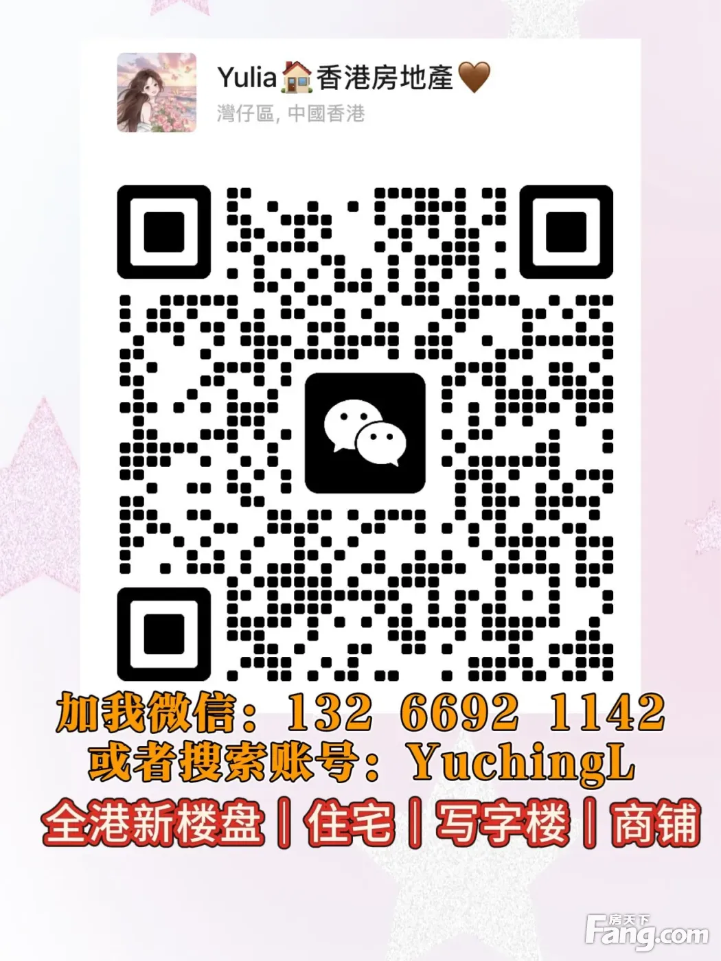 本人从事房地产服务多年,能给客户提供专业的服务,免费售后服务,律师楼转介,楼宇按揭,收楼验楼,房屋出租买卖等等。欢迎VX查询 黎雨情 Yulia : YuchingL / 132 6692 1142