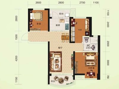 户型齐全,主打户型方正,L型厨房二居