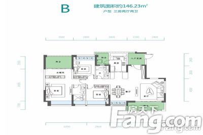小郑为您解读户型: 98-101平米精装三房,户型方正实用,通风采光好,客厅连接阳台看小区景观,双卧朝南,带飘窗。