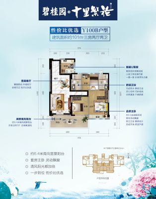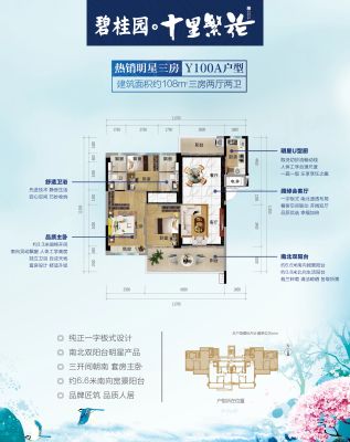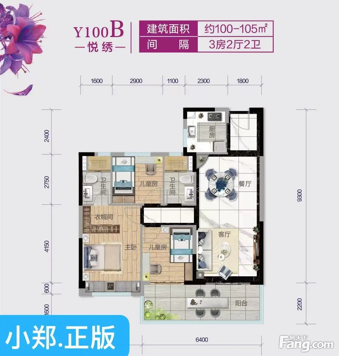 小郑为您解读户型: 104平米精装三房,南向约14㎡宽景阳台 客餐厅一体入户进深约9.3米 三开间朝南主卧套房设计领秀新城人居生活