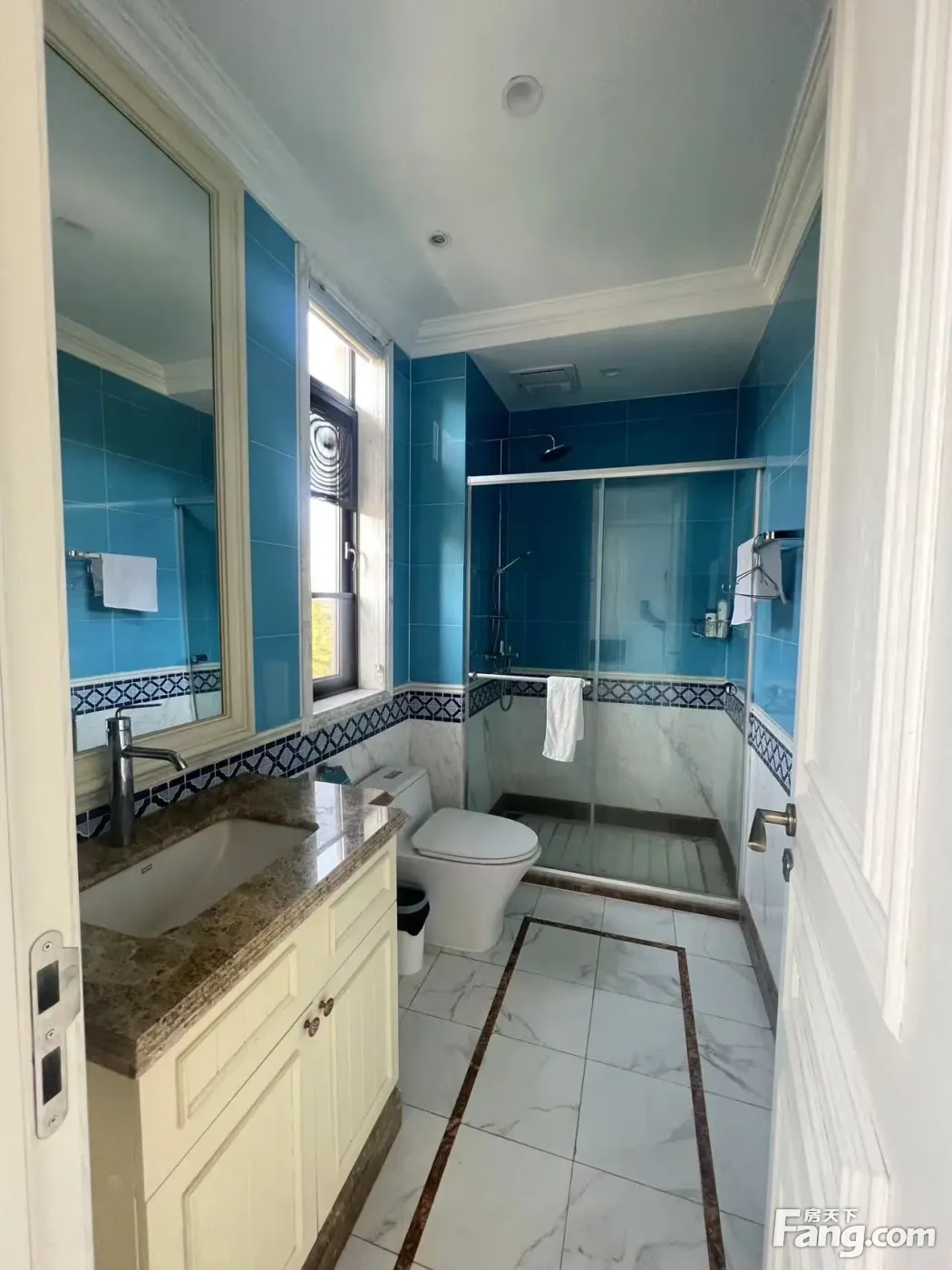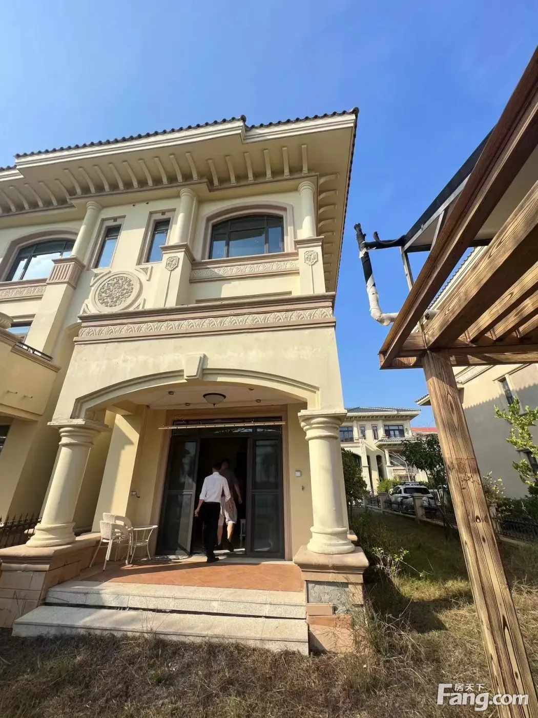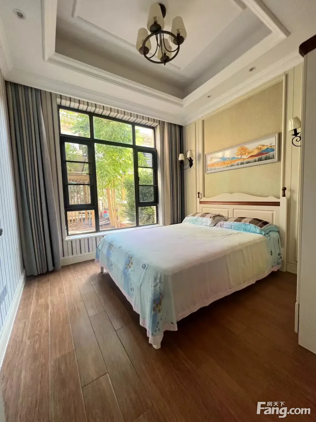 建筑面积213平米,纯地上3层,四房五卫,全明户型,通风采光都很好,赠送超大的花园和露台,实际使用面积高达450平米。