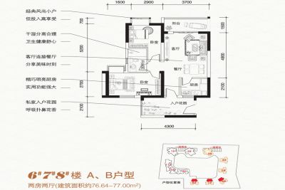 户型齐全,主打南北通透,全明格局,干湿分离二居