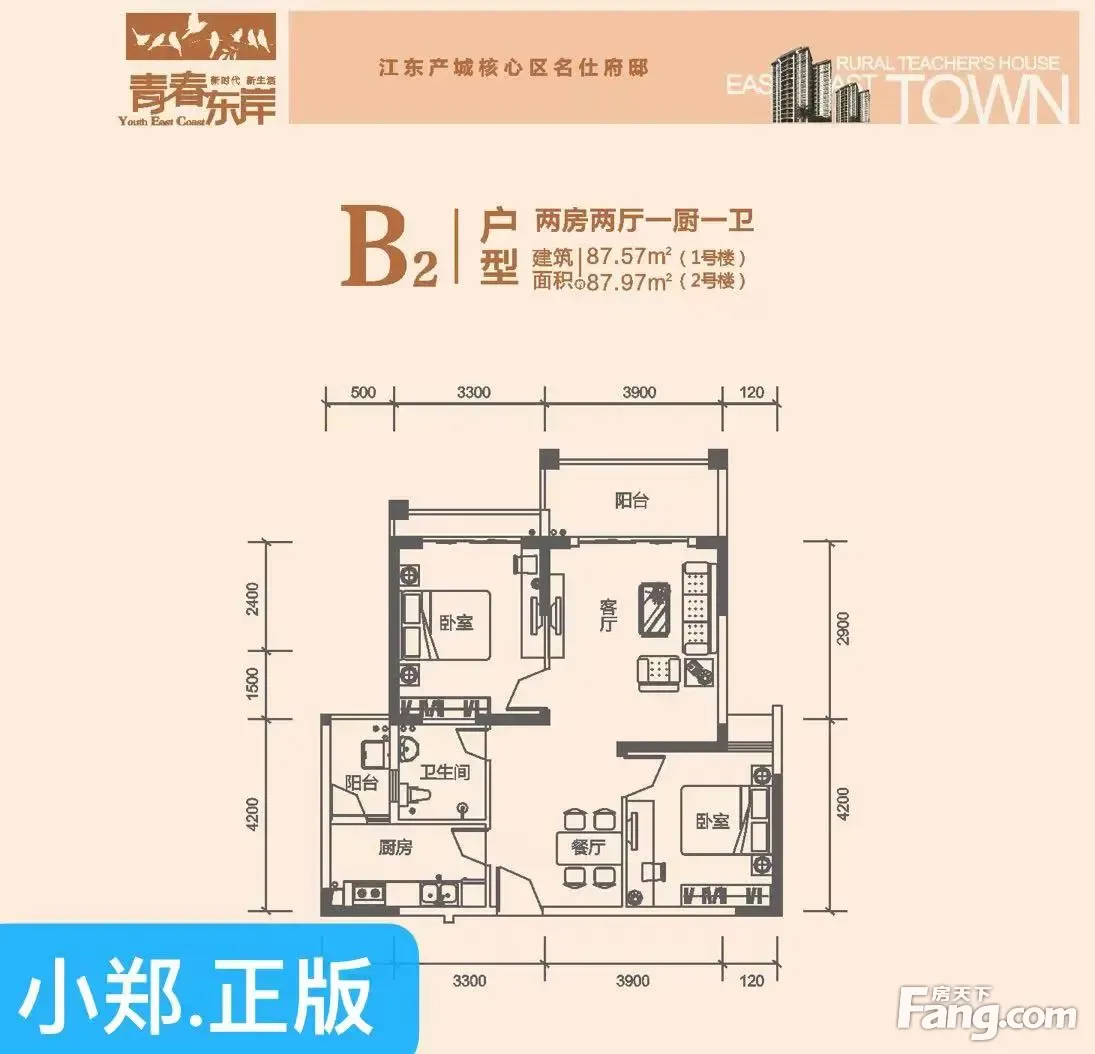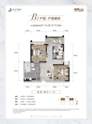 小郑为您解读户型: 87平米毛胚两房,方正舒适,各功能区完善,通透开间拥享假日阳光动静、干湿分离,健康私密,舒适空间的大享受宽景阳台,户外美景欣然入室,养生度假生活开始