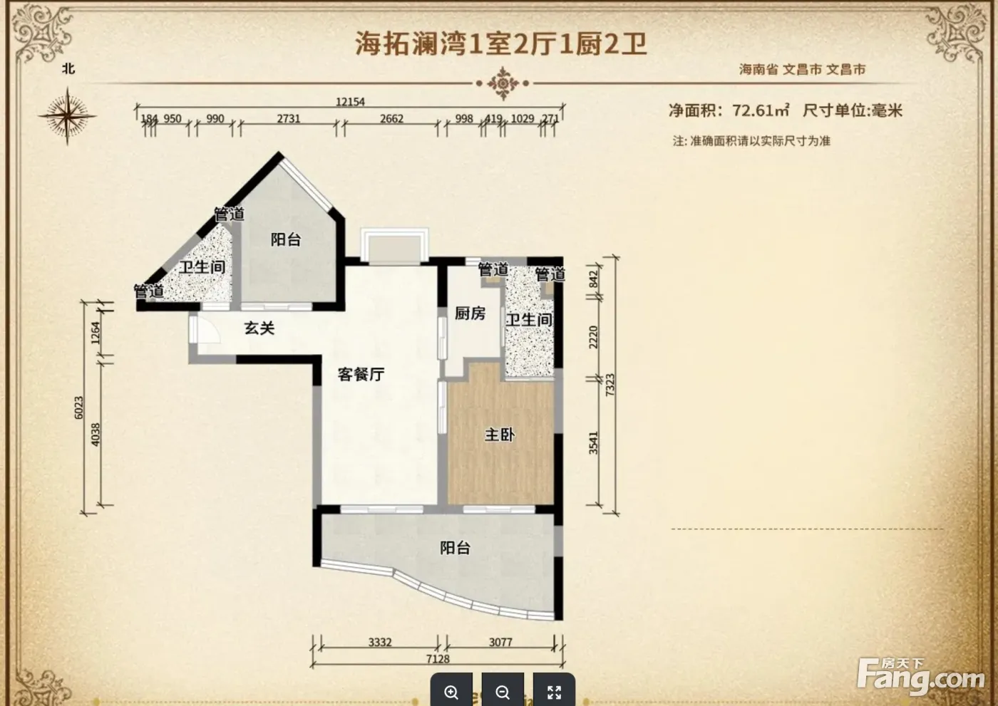 文昌海拓澜湾 91.53平2居 南北向简装修 随时签约
