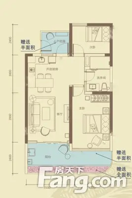 户型齐全,主打户型方正,开放厨房,卧室带阳台一居