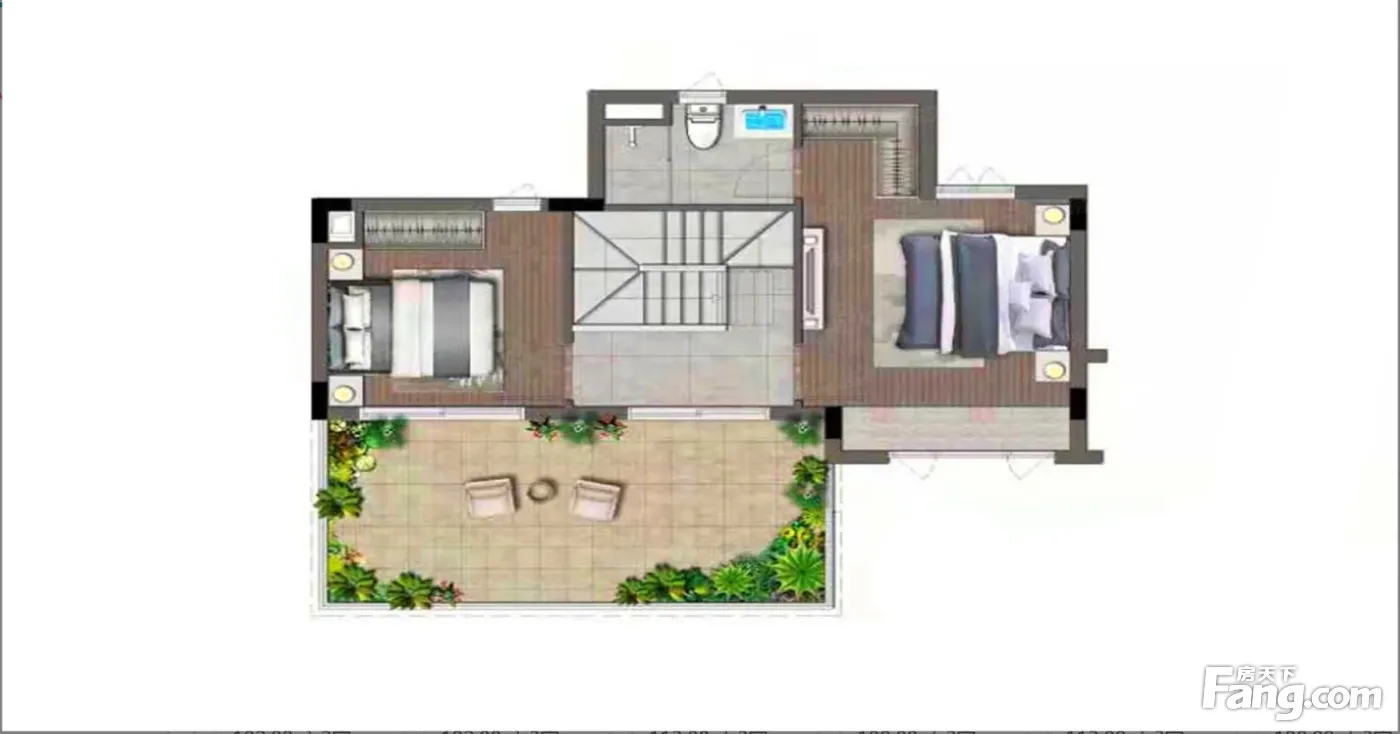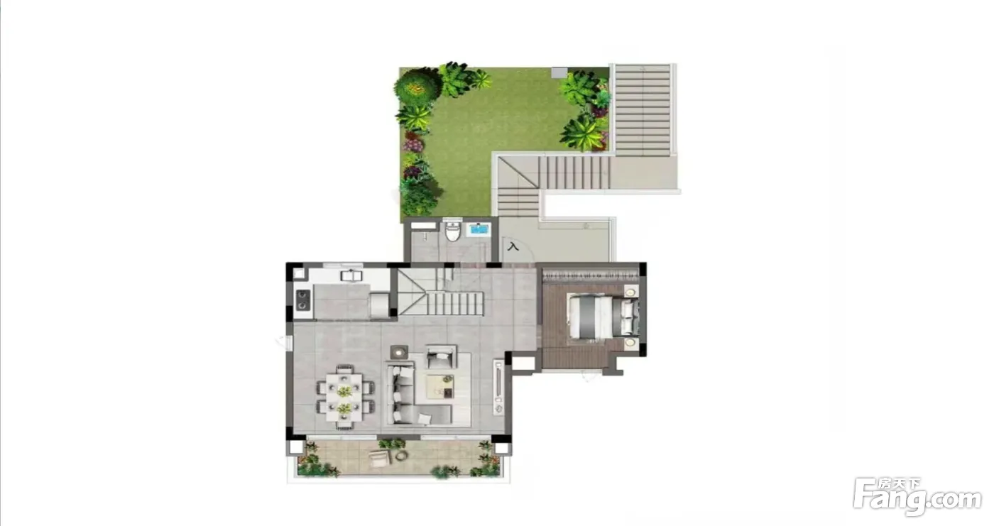 一栋楼总高4层 上面两层为上叠 下面两层为下叠 上叠为三房两卫 带露台 下叠为三房两卫带花园