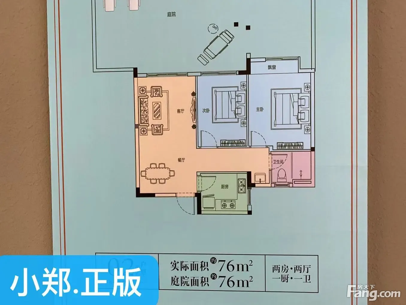 小郑为您解读户型: 76平米精装两房两厅一卫,餐客厅一体连接阳台,看小区美景,L型厨房,卧室连接阳台,洗手间干湿分离。