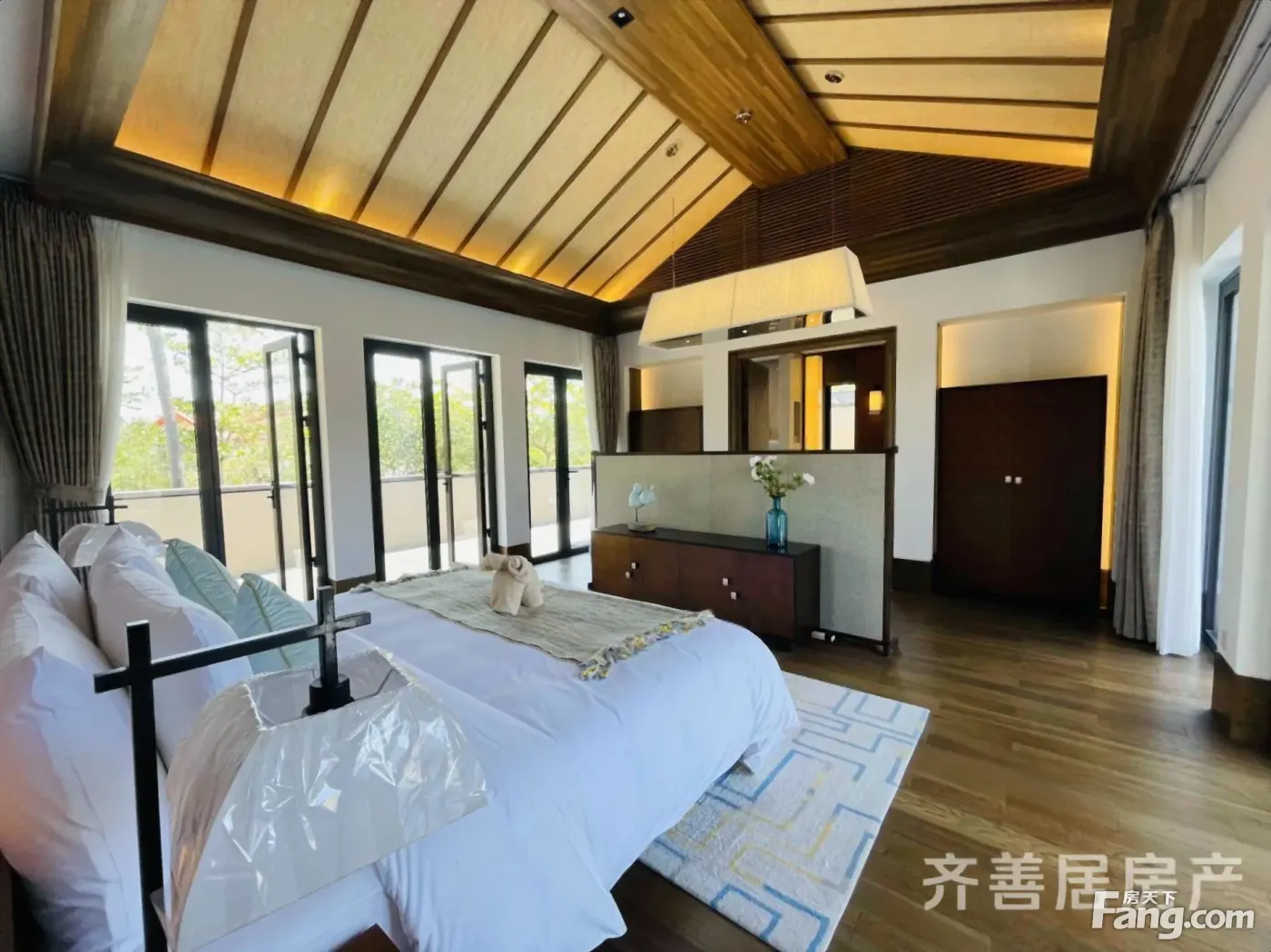 楼盘介绍 香水君澜别墅滨海别墅总占地面积为314564﹐,总建筑面积65416﹐。产品分别为海院墅,山院墅及水院户全泳池、全入户泡池、酒店入户,并附赠赠送;即将推出的旗舰级产品-蓝海行宫,更是以临海线、独有500平米入户沙滩等配套,成为的私人会馆。香水君澜别墅由来自杭州中国酒店集团20强之一的浙江君澜酒店集团全力打造。君澜集团为打造香水君澜组建了国际一线梦幻团队,酒店设计部分,建筑设计为加拿大aai国际建筑师事务所,香港易道刀景观环境规划,香港pal负责装修设计,都是国际业界一时之选!而在收藏级滨海别墅部分,则找到了拥有贯穿全局能力的金达利系统集成团队粉墨登场!包括负责整体规划的建言建筑,室内设计的大匀国际,曾刀台北101大楼景观设计的翰祥景观。香水君澜,800年底蕴杭派文化剪裁而出,中式斜屋顶、气派杭风大堂,体会完全不同于泛三亚万国酒店博览会般的民族风情。中轴景观带的88米观海云台泳池,海南罕见。又像是正下方海滩花园泳池的水晶跳板,令人想立即跃进水蓝之中尽情畅泳!所配套的香水君澜度假酒店更拥有spa、中西餐厅、酒吧、恋歌房、私人影院、会议室、约700米的私属沙滩、无边界游泳池、沙滩游泳池、沙滩排球等沙滩休闲娱乐设施。同时由酒店提供专属入户酒店包含入户spa、入户烹饪、私家party、日常打理、企业商务活动等。 交付标准 【五星级】6000元/㎡交付,采用国际一线家居,原材料为鸡翅木、天然火熔岩等,泳池水循环设备为澳洲运水高,燃气热水器为史密斯,旭格门窗以及德国丝吉利娅五金件。 【隐蔽工程】7层屋顶结构,钢筋混凝土、防水层、隔热层、导波层、木挂瓦桥、板岩瓦、整体避雷区,屋顶采用板岩瓦,弱化雨声,屋顶边沿采用吕岩板 【园林景观】园林设计错落有致,树种全冠移植、300多种,椰子芒果香蕉业主免费采摘,同时设有专门的交流平台,足球场以及香草园