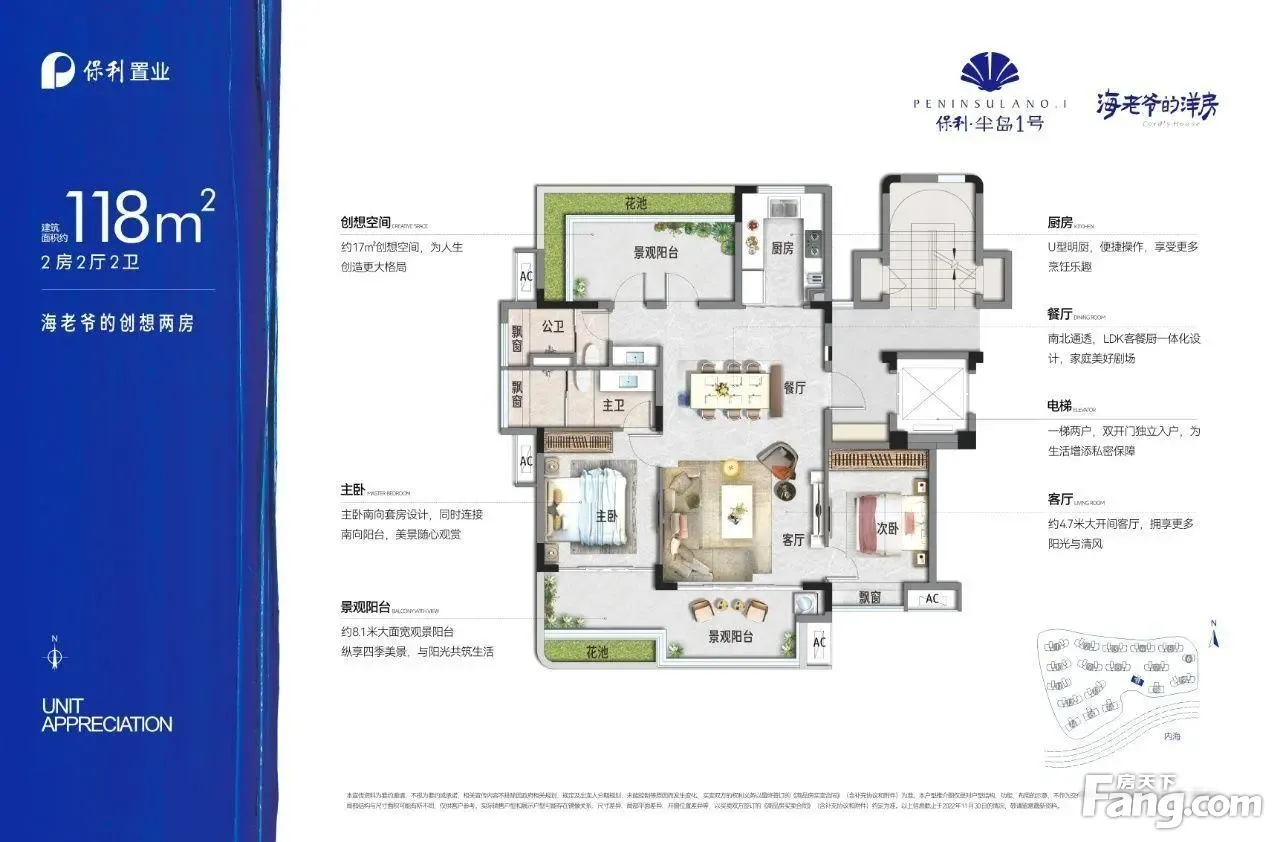 万宁央企 保利半岛一号 一梯两户洋房现房,板楼南北通透