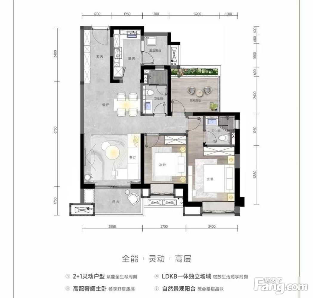 小郑为您解读103平米户型: 精装2+1灵动户型赋能全生命周期 LDKB一体独立场域绽放生活随享时刻 高配奢阔主卧畅享舒居质感 自然景观阳台 际会峯层品味