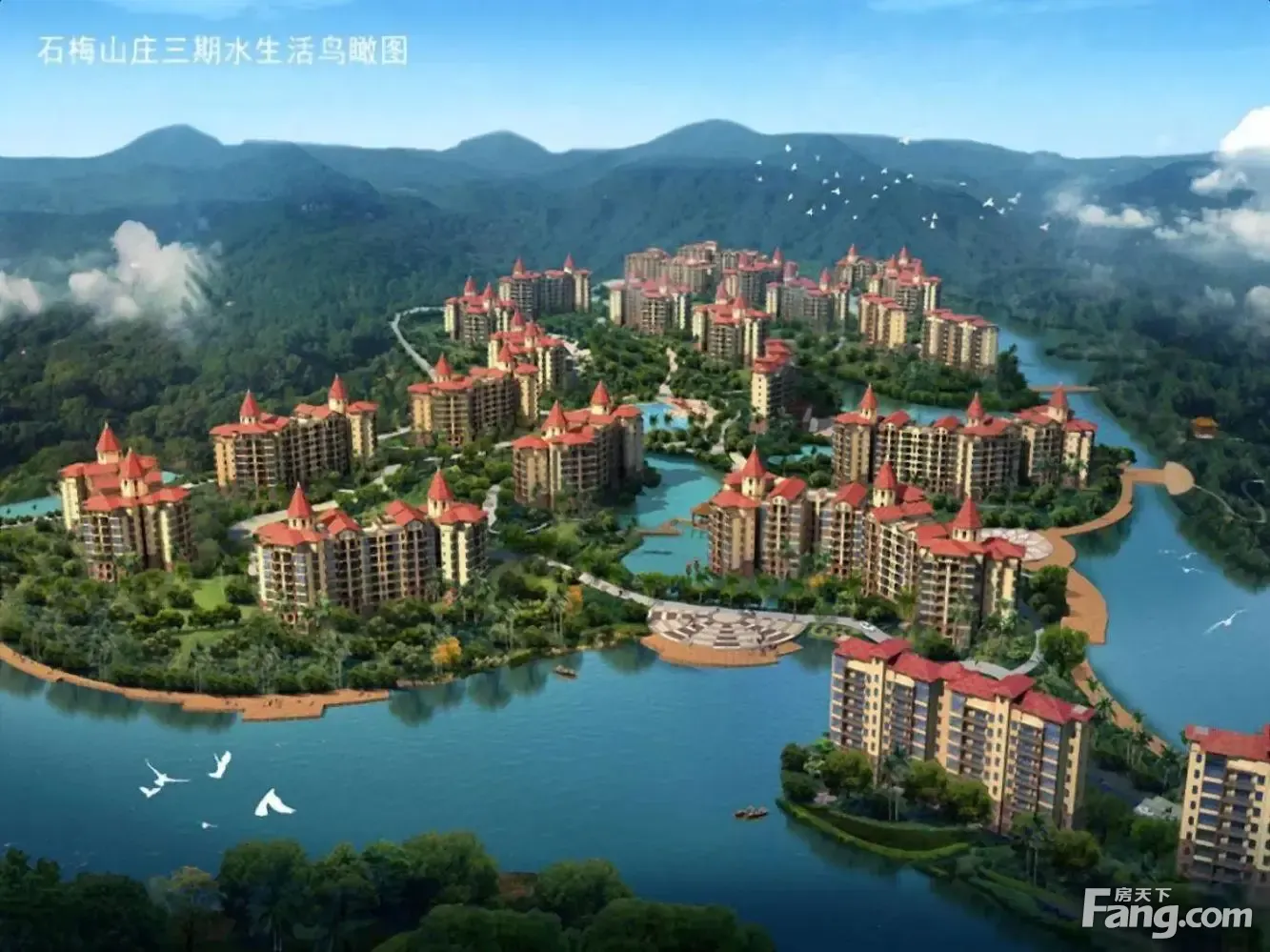 石梅山庄四期传奇,建于半山的坡地建筑,地块坐西北朝东南,高低落差70米,平均海拔35米,拥有0.8别墅级容积率,40-150米宽楼间距,整个建筑与山体 融合,相比平原上平整列阵式的建筑,视野更开阔,户户大幅揽景,通风、采光效果俱佳,已成为中国坡地建筑的典范。山水才是真正的不动产,四期传奇拥享350亩博冯水库、16000㎡景观湖,房子与山水相依,山水映衬着建筑,真正实现了人、建筑与自然相得益彰,和谐共处,也难怪住过的人都将项目称为海南 美小镇。