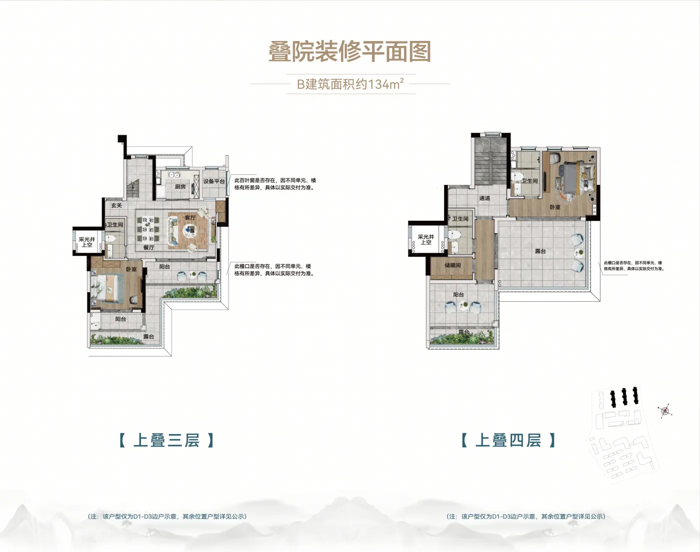 小郑为您解读户型: 137平米国际湖岛 新中式 东方墅 【美学】集东方美学经典的新中式徽派建筑,精装交付 【功能】3.9m挑高、27㎡空中露台、超纵深U型厨房 【空间】上下叠复式结构,人性化动静分离空间,100㎡隐藏拓展空间